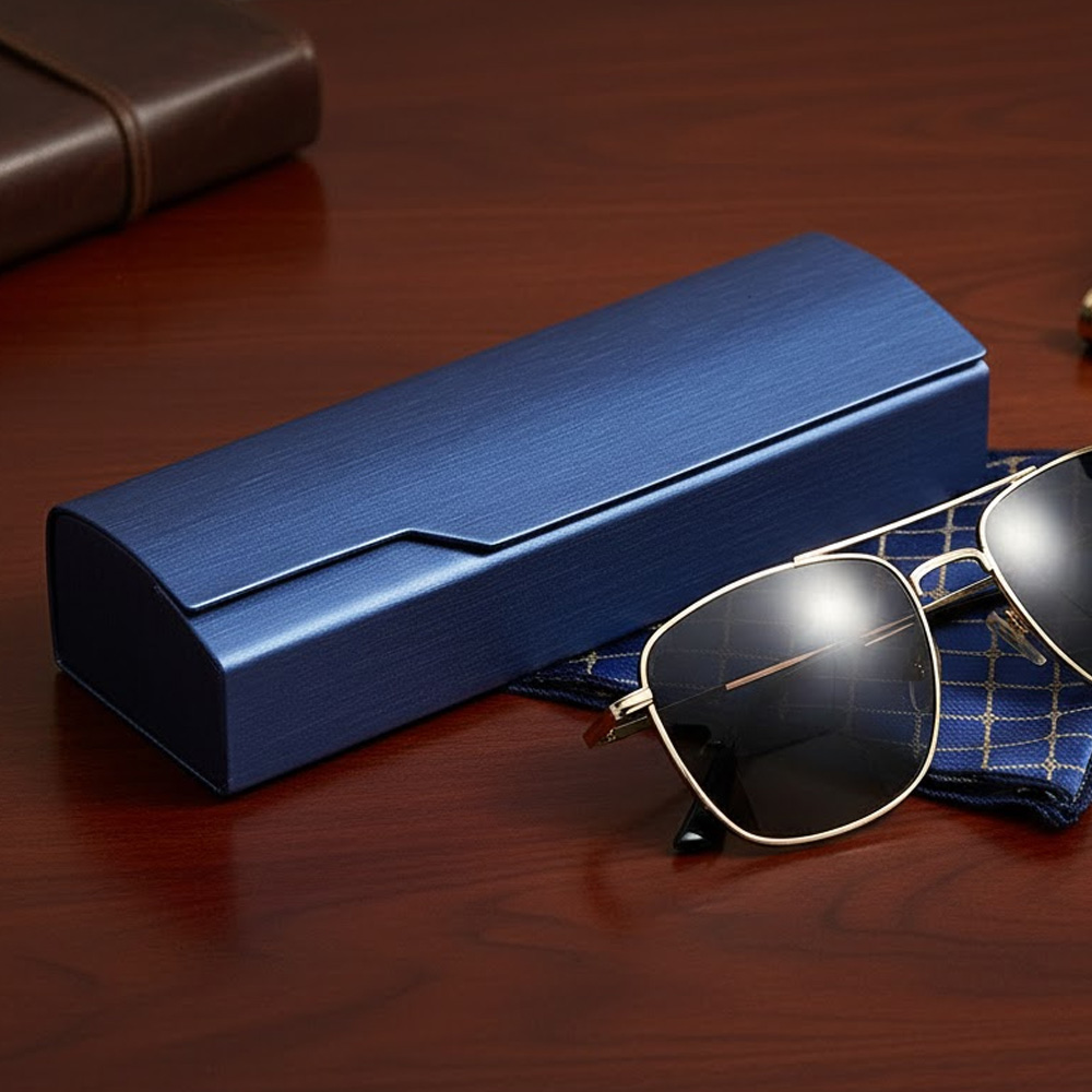 외부 압력에서 보호하는 탄탄하고 견고한 스틸 케이스. 내부는 안경 스크래치 방지를 위한 부드러운 천으로 마감.