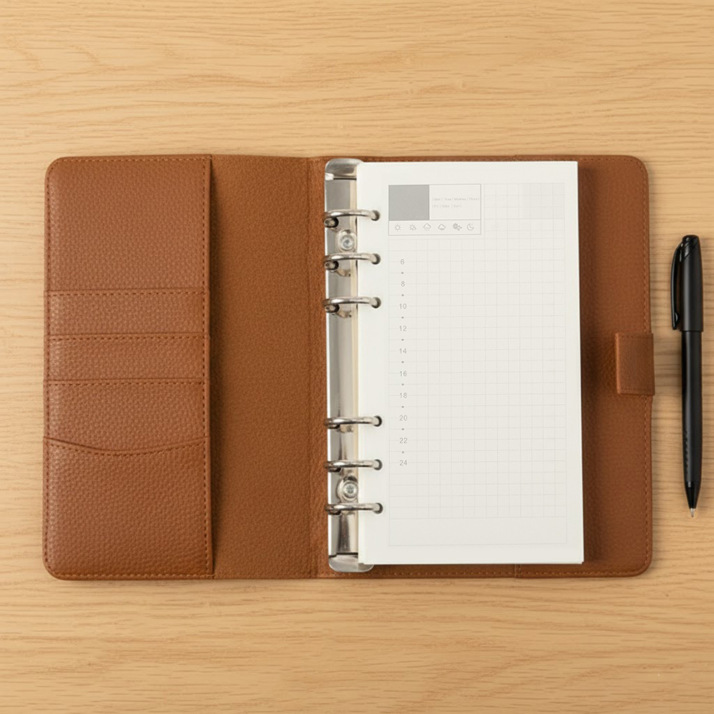 ▶ 속지 정보 양 식 : 양면 타임 테이블 (모눈 5mmx5mm) 사이즈 : 94mm x 171mm 재 질 : 100g 모조지 매 수 : 135매 (45매 x 3SET)
