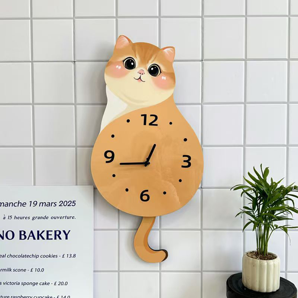 홈테리어 금빛 고양이 무소음 벽시계(색상)